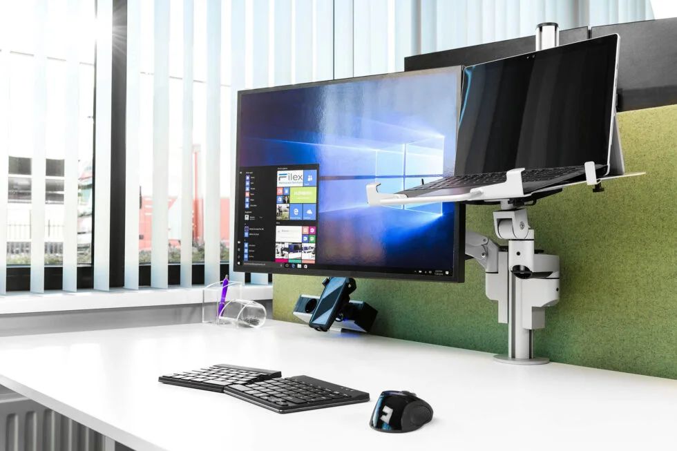 Door kabels weg te leiden via de interne kanalen van ergonomische monitorarmen, wordt zowel bureau-ruimte als een opgeruimde aanblik gecreëerd. U vangt als het ware twee vliegen in één klap.